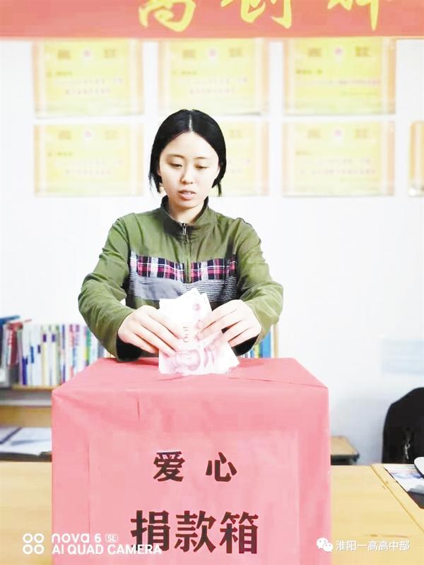 本报讯 5月25日上午,淮阳一高组织了一场汇聚全体师生爱心的捐款活动,并将20多万元爱心款交到患病学生家长手中。