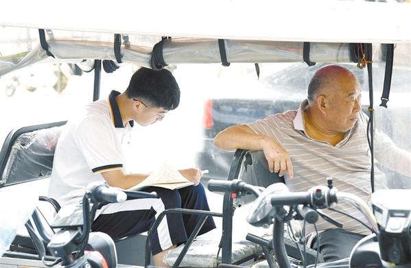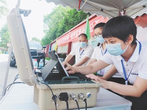 志愿者为考生免费赠送饮用水。通讯员 王海霞 摄
