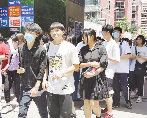 考生面带笑容走出考场。记者 孙安平 摄
