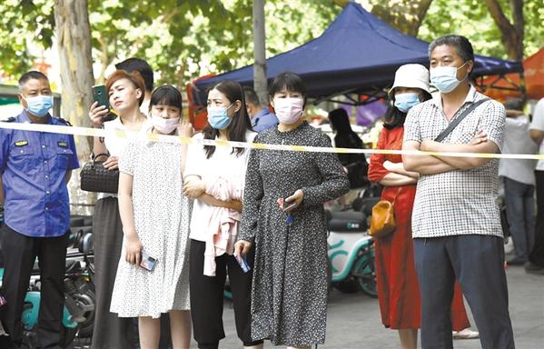 考场外,家长默默地等待着参加高考的孩子。记者 孙安平 摄
