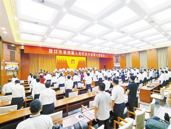 本报讯 6月10日上午,周口市第四届人民代表大会第六次会议在周隆重开幕。本次大会采取视频会议并设分会场的形式召开。来自全市各行各业、各条战线的市人大代表肩负全市人民的重托出席盛会,认真履行宪法和法律赋予的神圣职责。