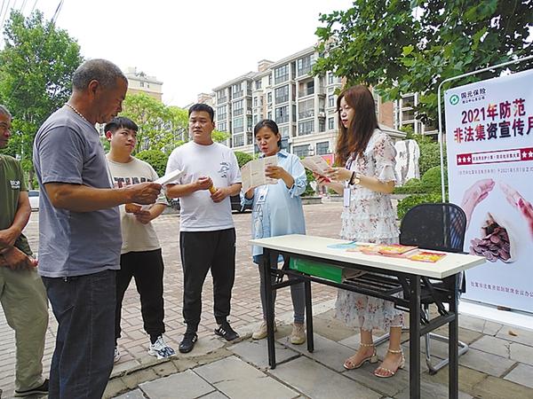 本报讯 今年6月为防范非法集资宣传月。为切实加强对非法集资风险源头的治理,不断提升社会公众金融素养和风险防范意识,保护公民合法利益,近日,市保险行业协会组织50余家保险公司开展防范非法集资宣传月活动。