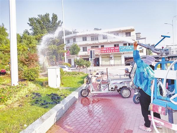 园林工人为花木浇水降温