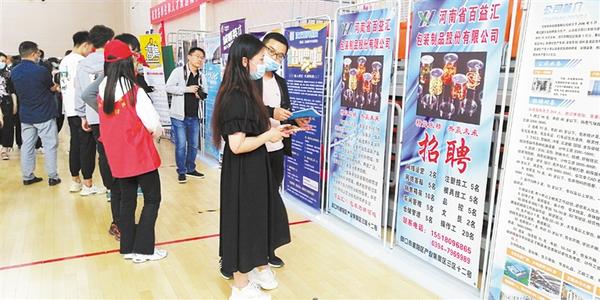 5月19日,2021年大中城市联合招聘周口高校毕业生春季专场活动在周口职业技术学院开元校区举行,200多家企业携7000多个岗位进场招贤纳士。