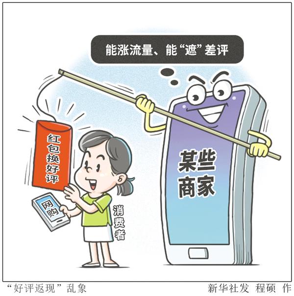 市场监管总局8月17日发布《禁止网络不正当竞争行为规定》征求意见稿,面向社会公开征求意见。其中明确规定:经营者不得采取以返现、红包、卡券等方式足以诱导用户作出指定评价、点赞、转发、定向投票等互动行为。专家指出,此类行为扭曲破坏电商信用评价机制,侵害消费者合法权益,应当严格依法治理。 新华社发 程硕 作