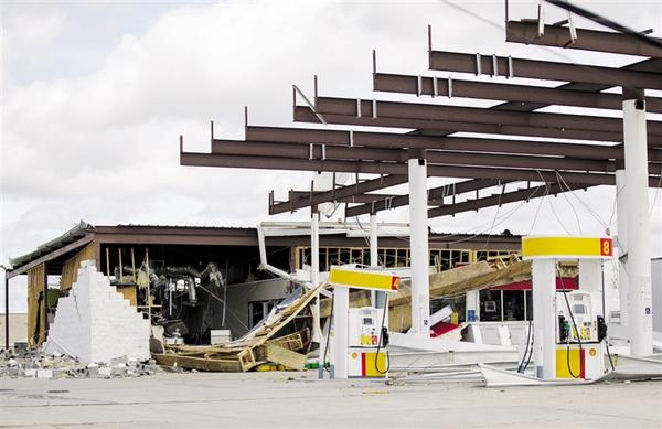 8月30日,在美国路易斯安那州霍马,一座加油站被飓风毁坏。
