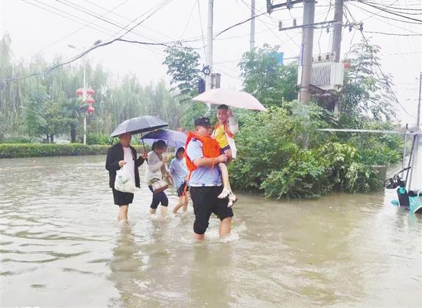 本报讯 9月4日上午,天降暴雨给群众带来极大的不便和安全隐患。商水县公安局特巡警大队按照局党委部署,启动一级勤务模式,冒雨上街巡逻。