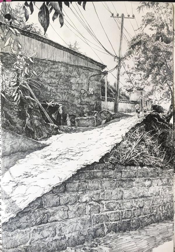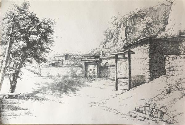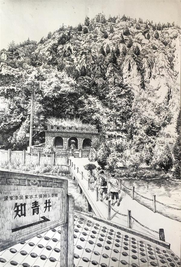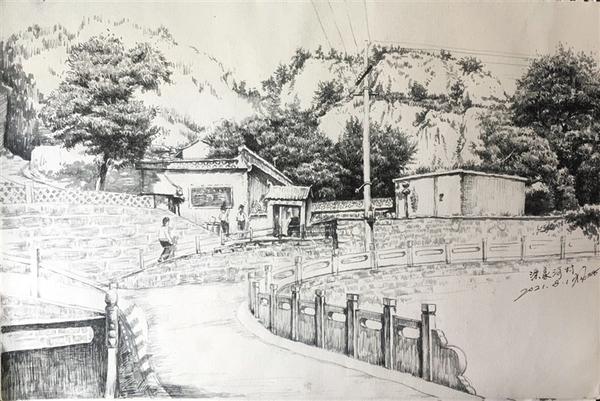 速写本上,梁家河一号院、知青井、梁家河知青旧址等地以钢笔画的形式呈现,画面简洁清新。