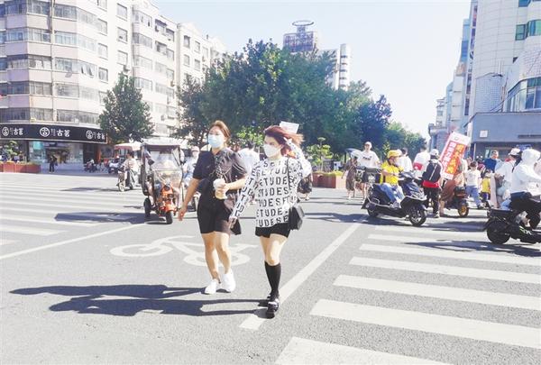 9月12日,我市最高气温达35度,街头市民身着轻薄的夏装、出门需要遮阳,如同三伏天。现在己入秋, 天气本应逐渐转凉,但近几日,我市却持续高温,“秋老虎”开始发威。记者 孙安平 摄
