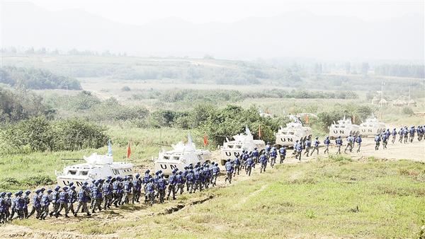 9时许,综合演练正式开始。中国、蒙古国、巴基斯坦、泰国等国1000余名参演官兵混合编组、联合指挥、一体行动,围绕“多国维和部队联合行动”课题,共同完成临时行动基地建设、警戒巡逻、武装护卫、保护平民、应对暴恐袭击等多课目连贯演练。