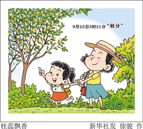 “故园应露白,凉夜又秋分。”《2021年中国天文年历》显示,北京时间9月23日3时21分将迎来“秋分”节气。此时节,天高云淡,露冷风清,凫雁高去,桂蕊飘香。 新华社发 徐骏 作