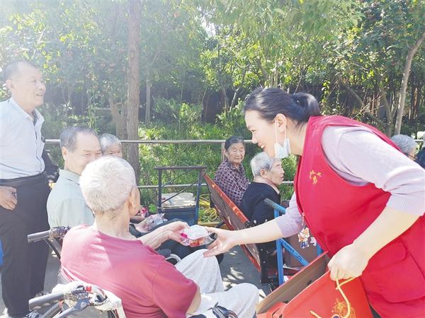 本报讯 9月21日上午,周口蓬莱养老院的老人迎来一群熟悉的客人,市慈善总会、市三川社工义工服务中心组织30名志愿者带着月饼、水果等节日礼品,共同祝福老人身体安康、中秋节快乐。