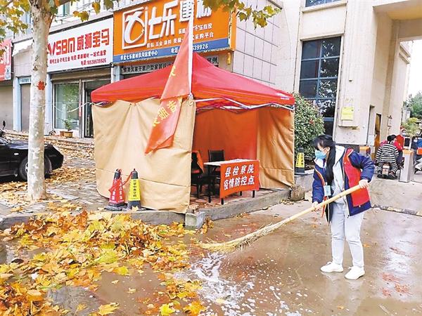 面对突如其来的疫情,扶沟县人民检察院积极响应省委、市委、县委关于疫情防控的工作部署,充分发挥党组织和党员干警的引领作用,迅速组织全院干警投入抗疫一线。虽然战场由他们擅长的公诉席、讯问室变成了核酸采样现场、小区卡点,但他们的敬业精神没有变。11月7日,扶沟县下起了雨雪,检察干警迎难而上、逆风而行,毅然坚守在疫情防控一线。②9记者 彭慧 摄