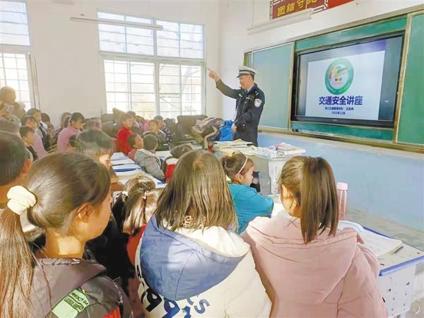 12月1日下午,交警王凯伟为小学生讲解交通安全知识。12月2日是第十个“全国交通安全日”,市公安局交通管理支队高速七大队走进安罗高速沿线的西华县李大庄乡二台村小学,为孩子们上了一堂别开生面的交通安全课。活动结束后,王凯伟一行又来到附近村庄,向村民发放宣传资料,讲述发生在身边的案例,让广大村民牢固树立交通安全意识。③7记者 张洪涛 摄