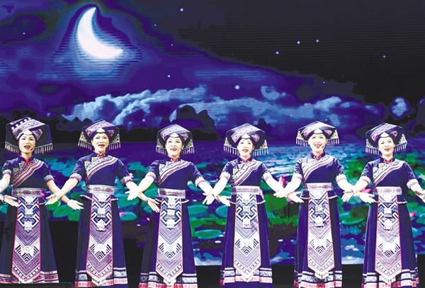 当日,《十二天籁 壮族嘹歌》晚会在南宁市广西文化艺术中心举行。壮族嘹歌是国家级非物质文化遗产,演出以传统原生态嘹歌为基础,再现了生活如歌、嘹歌如魂的现实场景。新华社记者 周华 摄