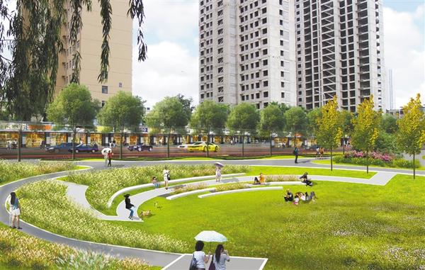 据介绍,其具体实施方案是,把七一路一侧整体打造为开放共享的城市广场,将现有公园大门、围墙取消,广场空间内退,形成围合型的市民广场;拆除现有烈士陵园,保留烈士纪念碑和铺装,改造为开放式的城市广场空间,两处广场空间一收一放,彰显出不同特质;拆除公园围墙,打开城市界面,沿街设多处入口,解决现存的开放性不足问题;将原有游乐设施区改造为全龄儿童活动区,利用部分拆除后遗留硬质铺装基础,结合现有乔木分布,根据不同年龄段儿童活动特性进行设计,儿童活动设施设计考虑安全性和多样性,为家长看护休息提供必要场所;把常青路侧坑塘改造为海绵广场,打造兼具雨水消纳和景观游憩的城市开放空间,结合地形顺势设计坡道、条石坐凳,为市民提供休闲、观景的舒适空间。