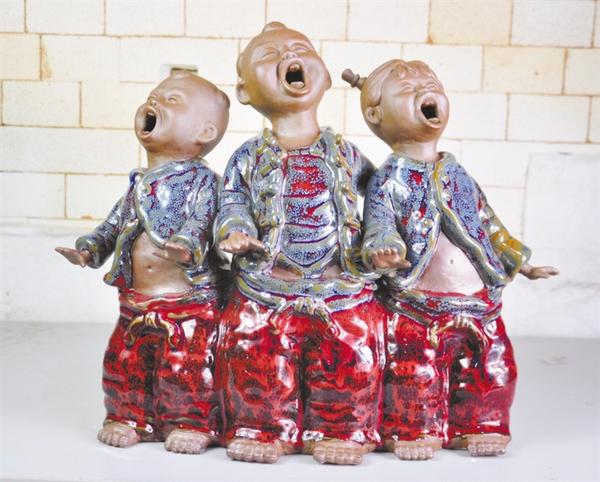 钧瓷泥塑作品《唱支山歌给党听》长45厘米、宽18厘米、高39厘米(如图),生动反映了乡村孩子健康、阳光、向上的精神状态。