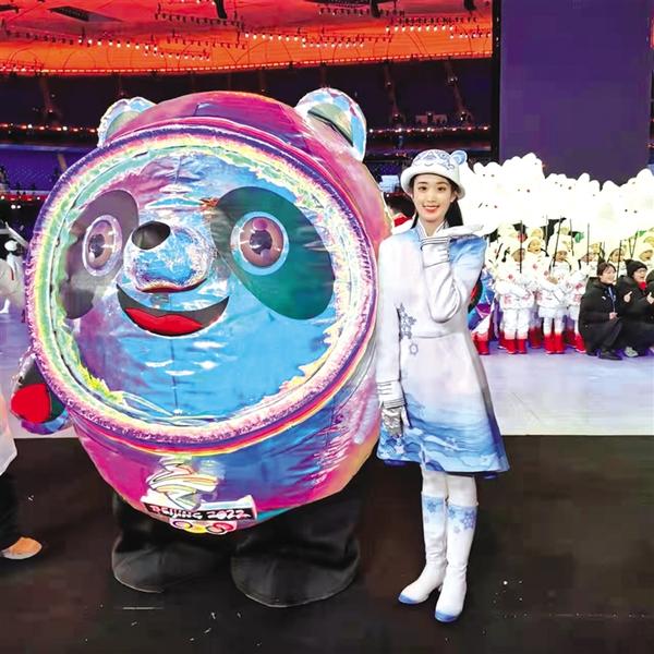 2月4日晚,演出现场,手持雪花引导牌的李昊滢与北京舞蹈学院其他95名同学一起表演《构建一朵雪花》表演。“站在鸟巢硕大惊艳的舞台上,闻听观众的尖叫声,内心感到无比激动和兴奋!”李昊滢说。