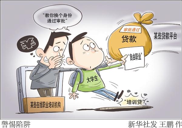学生因无收入来源无法贷款,培训机构工作人员帮忙“换个身份”通过审批。记者调查发现,三令五申遭禁止的“校园贷”在个别在线职业培训机构依旧活跃,机构“老师”除了推销课程外,还担任“贷款专员”,教授各种技巧规避贷款平台身份审查。报名开课后,不少学生发现课程“缩水”,宣称的“包就业”“包兼职”更是天方夜谭,申请退款不成后,只能背负着债务讨要说法。 新华社发 王鹏 作