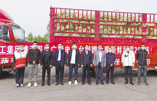 本报讯 4月12日上午,周口市爱心企业河南悦晨建设工程有限公司,将捐赠的80吨爱心蔬菜运送到太康县抗疫一线。
