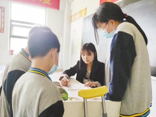 从此,除手拄拐杖外,苑贝贝和往常一样,像姐姐一样与学生轻松互动,给学生细致讲解,一个个考点被她讲的清楚明白,一道道习题被她分析的头头是道。于是校园里就经常出现这样一组身影:在两三个老师或学生的搀扶下,一名拄着拐杖的老师来回于教学楼和办公楼之间,勾勒出校园一道特殊的风景线。