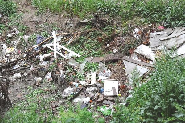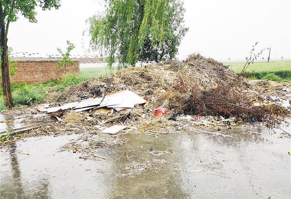 沈丘县李老庄乡政府所在地天鑫洗浴中心南侧沟边有杂物垃圾