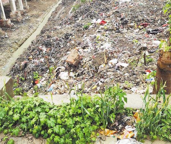 项城市贾岭镇政府路东加油站南侧沟内有垃圾和杂物