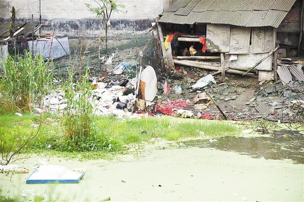沈丘县老城镇中心卫生院南侧小区南边坑边有大量生活垃圾