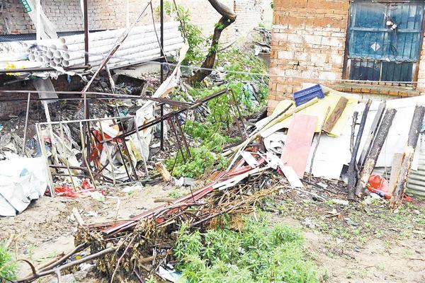 项城市贾岭镇政府北路东小刀电动车店一侧乱堆杂物现象严重