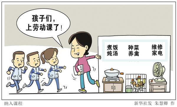 教育部义务教育劳动课程标准组组长顾建军表示,劳动课作为一门课程,由学校发挥主导作用,家庭发挥基础作用,学校、家庭、社会协同推进。