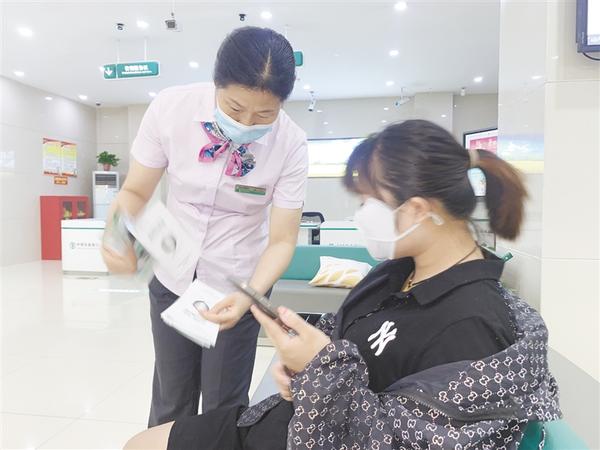 7月1日,农行西城支行大堂工作人员指导客户通过手机银行、掌上银行办理业务,让金融服务在战“疫”期间不间断、不打烊、不放松。近日,农行周口分行在抓好疫情防控工作的同时,通过线上线下齐发力,为客户提供更加优质、更多种类的综合金融服务,努力构建全方位、多层级、多角度金融“防护网”。