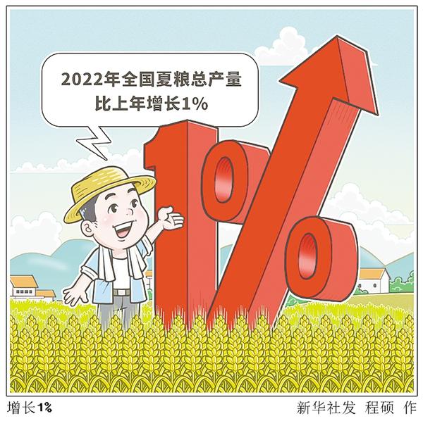 国家统计局7月14日发布数据,2022年全国夏粮总产量14739万吨(2948亿斤),比上年增加143.4万吨(28.7亿斤),增长1%。其中,小麦产量13576万吨(2715亿斤),增长1%。新华社发 程硕 作