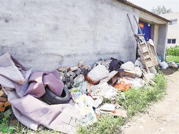 示范区许湾办事处东翟桥村村北居民屋后存在垃圾和废弃物堆放现象