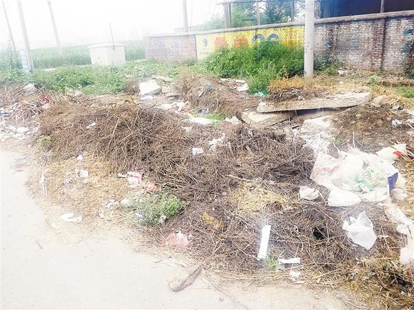 黄泛区农场东环路道路沿线存在树枝秸秆、生活垃圾和杂物堆积数十米现象