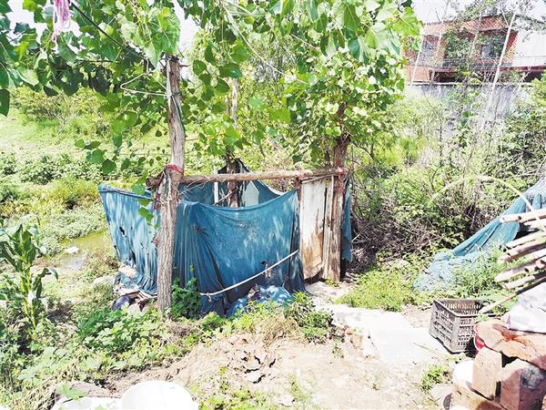 示范区许湾办事处西张庙村村内坑塘边存在堆积大量秸秆和杂物现象,坑塘边有一处露天旱厕
