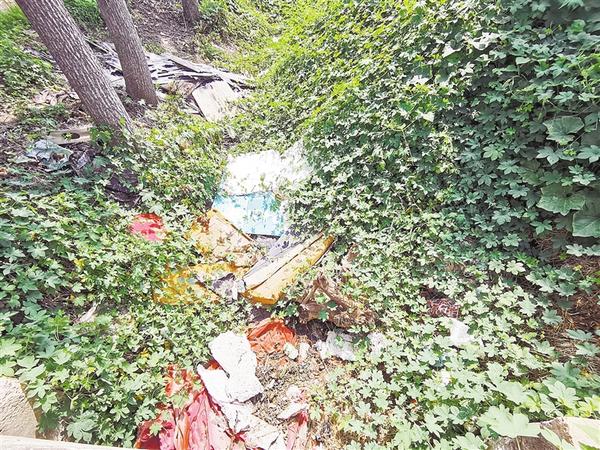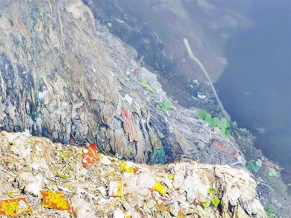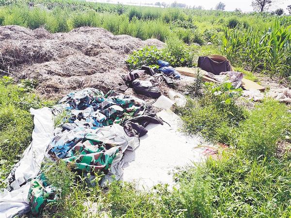 商水县魏集镇钊庄村附近沙石料场旁边沟内有大量生活垃圾废弃物