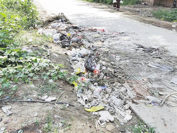 商水县魏集镇一处生活垃圾散落无人清理,附近有大量回收垃圾