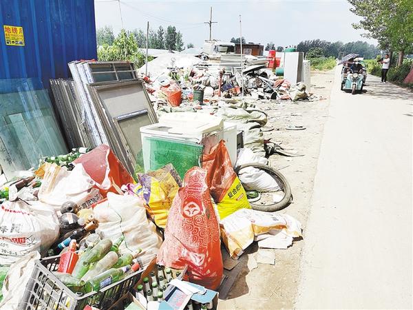 商水县魏集镇钊庄村附近路边废品回收点不规范,露天存放