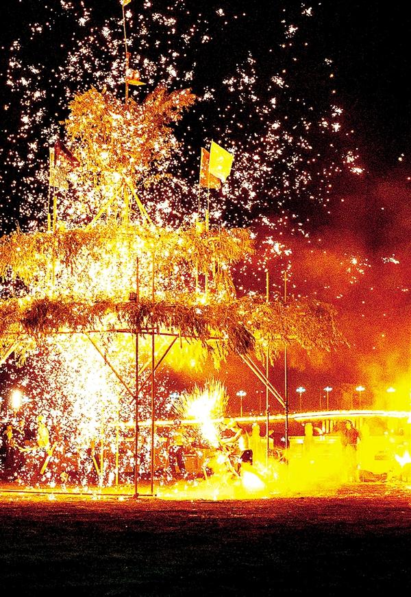 7月30日晚,在淮阳伏羲文化广场,作为2022周口·淮阳文化旅游消费季系列活动之一的国家级非遗项目“打铁花”精彩亮相。借助柳枝搭起的两层“花棚”,艺人们将滚烫的铁水抛打至空中,如烟花绽放,点亮夜空,令人叹为观止。②7