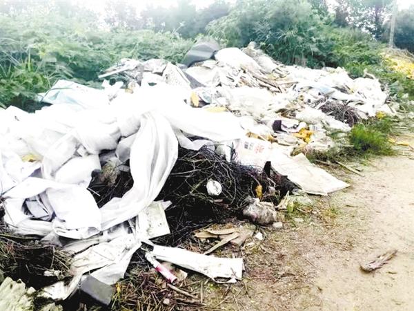 淮阳区刘振屯乡赵腰庄村东头坑塘边有大量生活垃圾、秸秆