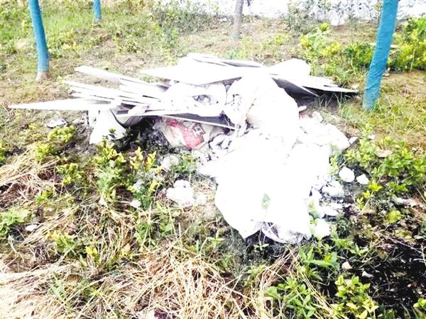 淮阳区刘振屯乡西头县道015旁边有一处残垣断壁,大量建筑垃圾、秸秆和废弃物