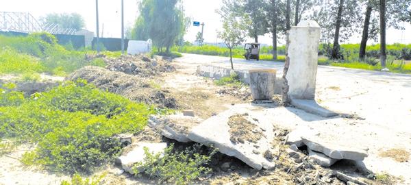 川汇区华耀城办事处后孙庄村入村水泥路旁有秸秆和杂物堆积