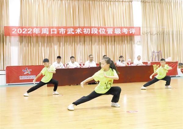 本报讯 8月22日上午,由周口市武术协会主办的中国武术初段位晋级考试在市体育中心开考,来自各县(市、区)武术协会、武校、武馆、武术俱乐部的44支代表队843人参加考试。此前,因新冠肺炎疫情影响,周口武术段位制暂停了3年。