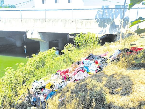 商水县张明乡x017道路张明桥东北桥下散落有大量生活垃圾