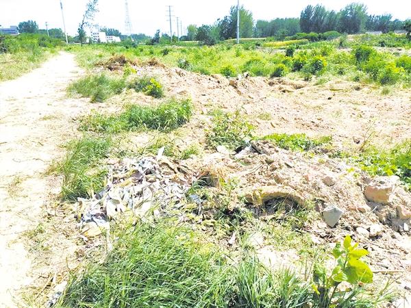 商水县东城办事处小李庄村南两侧有秸秆及建筑垃圾堆放