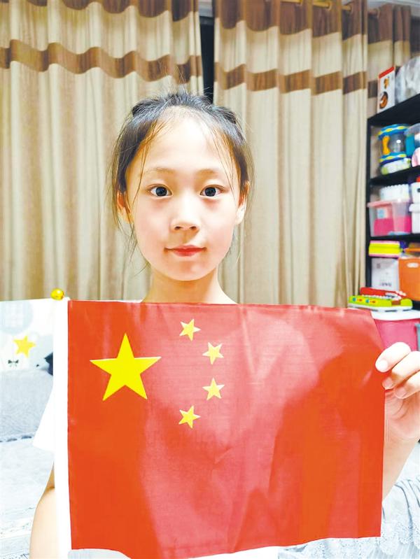 小记者:尹一伊 证号:220431 周口市纺织路小学四(6)班 国庆节当天,我通过“我与国旗合个影”活动,祝祖国妈妈生日快乐,祝愿祖国繁荣富强!(辅导老师:史永红)