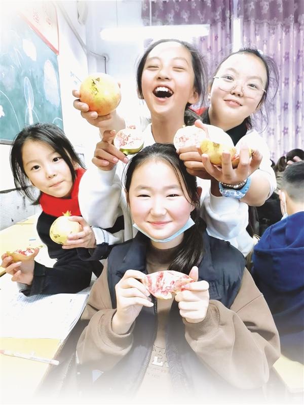 10月10日,郸城县第二实验小学的石榴园喜获丰收,孩子们分享丰收的喜悦。