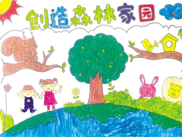 我心目中的森林是这样的——参天大树到处都是,小鸟在树枝上歌唱,小动物在地上舞蹈……为了让心目中的森林出现在现实中,我要争做环保小卫士,为保护森林尽一份力。(辅导老师:雷灿)
