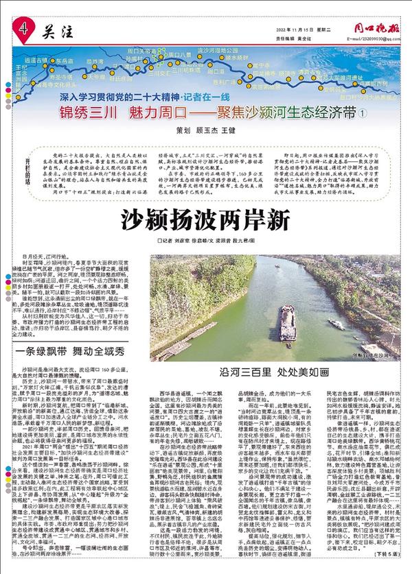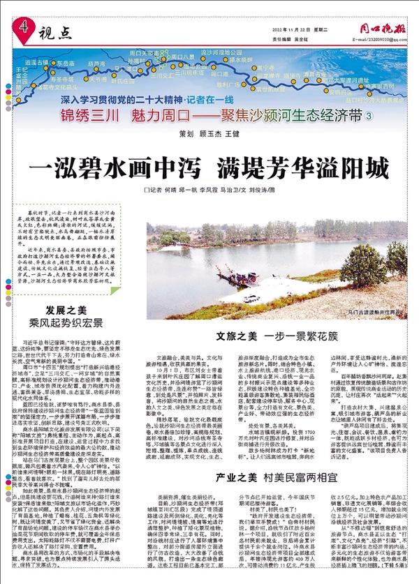 历时两个多月的沙颍河生态经济带系列报道,在12月24日沈丘篇发表后己近尾声。此次战役性报道,周口报业传媒集团投入大量人力物力,通过传统媒体及新媒体,系统性、全景式呈现了沙颍河周口境内160多公里生态带全域建设现状及灿烂图景,让全市人民以及全网受众,身临其境般“见证”并“体验”了沿线的如画风光、独特景观、深厚文化、丰富物产,并忍不住发出感叹——江山如此多娇,引无数英雄竞折腰!