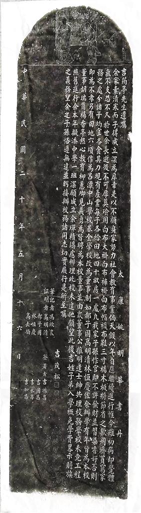 这通碑刻重见天日,不仅可以帮助我们了解吉筠亭先生的生平事迹、家庭状况,以及携子吉鸿昌等创办扶沟吕潭中山学校的过程,同时也对我们重新认识吉鸿昌的家世和成长背景,开展爱国主义教育和廉政教育,具有一定的社会现实意义。